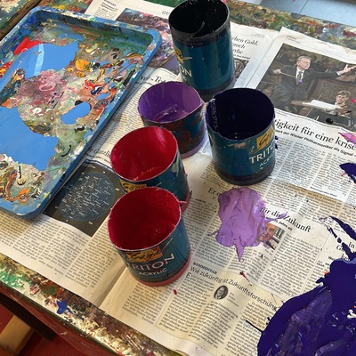 Mit Gelplatten und Luftballons, Schablonen und diversen Alltagsgegenständen druckst du einzigartige Bilder, die alle zum Staunen bringen werden. Wir arbeiten mit nicht herauswaschbarem Acryl, daher ziehe bitte unbedingt alte Kleidung an!