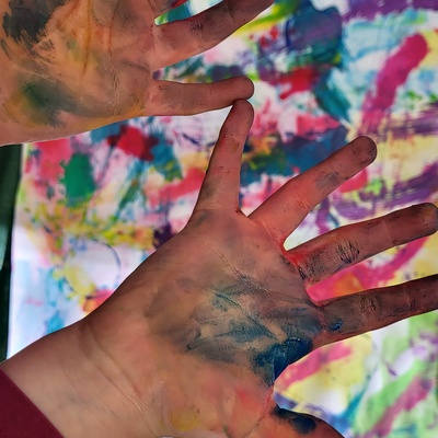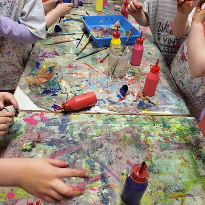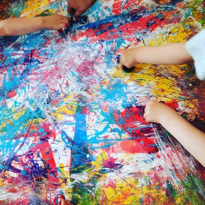Ein großes Bild, Farbe, Kleister und Freude am Malen - mehr braucht es nicht! Lasst euch überraschen.