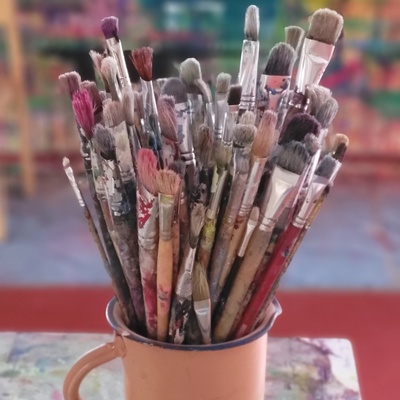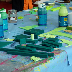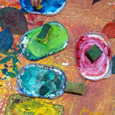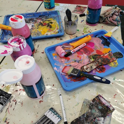 Mit viel Farbe, Pinseln, Rollen, Kleister und vielen anderen Materialien entsteht ein großformatiges Bild, lasst euch überraschen! Für Kinder im Alter von 4-6 Jahren ohne Begleitung.