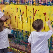 Spritzen, klecksen, mit Händen und Füßen malen mit viel Spaß und ganz viel Aktion entsteht ein einzigartiges Bild! Für 5-7 jährige Kinder ohne Begleitung.